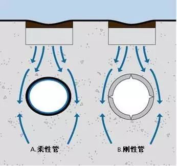 塑料管屬于柔性管,在受外壓負(fù)荷時,柔性管和剛性管的承受負(fù)載的機理是全部不同的。柔性管在受壓破壞之前,可以有較大的變形,而剛性管在受外壓破壞之前不可能有較大變形。當(dāng)剛性管受外壓時,負(fù)載全部經(jīng)過管材壁傳遞到底部的管床上,在管材壁內(nèi)產(chǎn)生彎矩,隨著管材直徑加大,管壁的彎矩和應(yīng)力急劇加大,所以大直徑的混凝土排水管常常需加鋼筋,而柔性管在受壓破壞前先變形----橫向外擴,管材周圍的回填土壤可以起到阻止柔性管變形和外擴的作用,外壓負(fù)載就被傳遞和分?jǐn)偟街車幕靥钔林腥チ?。所以,在同樣外壓?fù)載下柔性管管壁內(nèi)的應(yīng)力較小,它和周圍的回填土共同承受負(fù)載,管土共同作用。因此,塑料埋地排水管不需和剛性混凝土管一樣的強度和剛度,在合理的剛度下,是全部可以達到使用要求的,這一點已被歐洲發(fā)達的應(yīng)用實踐所證明。