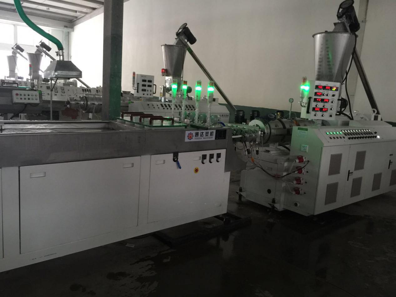1:SJSZ-65型錐形雙螺桿擠出機(jī),具備高塑化率,熔體均勻,生產(chǎn)連續(xù)、穩(wěn)定;